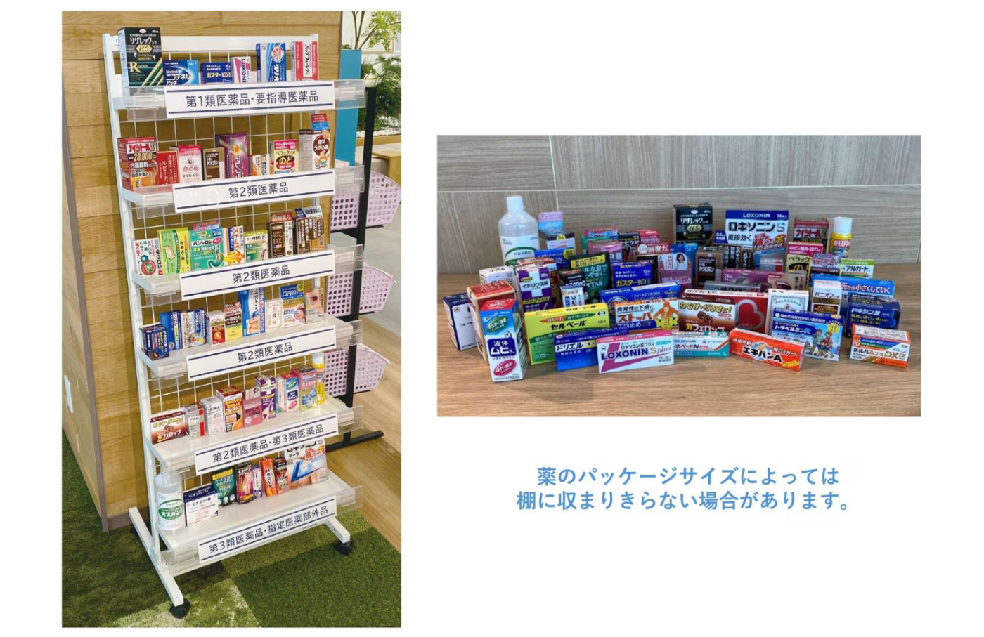 48薬効群を1台で並べることが可能です。(空箱での陳列方法を想定しております)