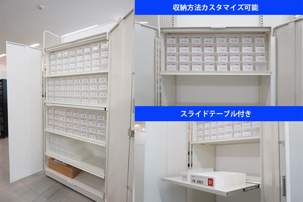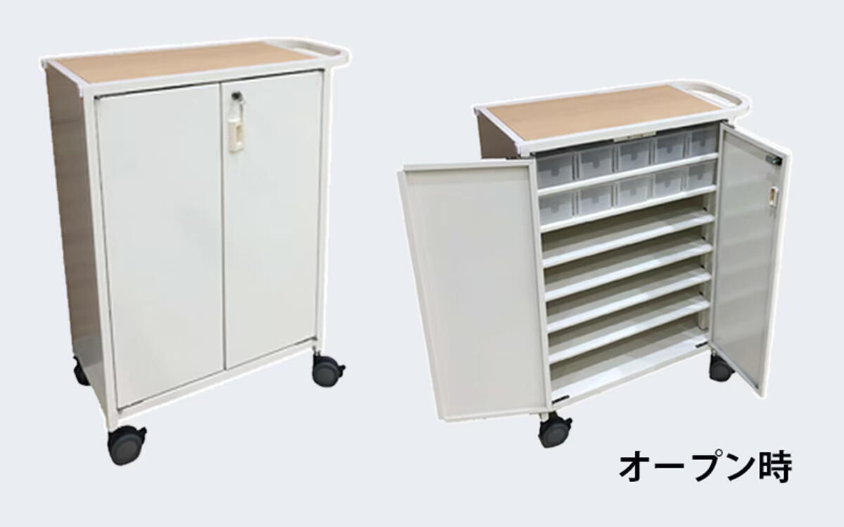 特注製作も可能で、お薬の管理方法や運用方法に合わせてご提案します。既製品の薬品庫やカートでは使いにくさを感じているなどお困りごとがあれば、ご相談ください。