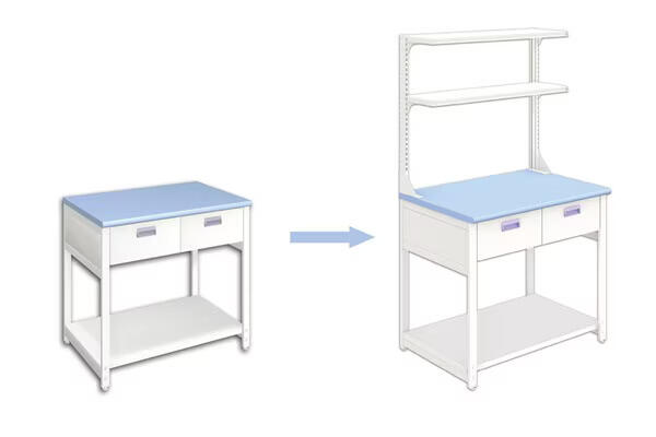 お使いの作業台の上に収納スペースをつくることができる製品です。作業面を整理整頓することで、作業時のストレスが軽減されます。