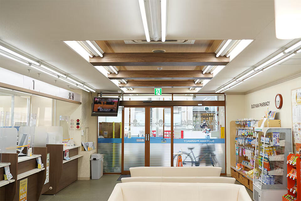 患者様に安心感と快適性を提供する空間を実現しました。取材にご協力いただいたスギヤマ薬品様に深く感謝申し上げます。
