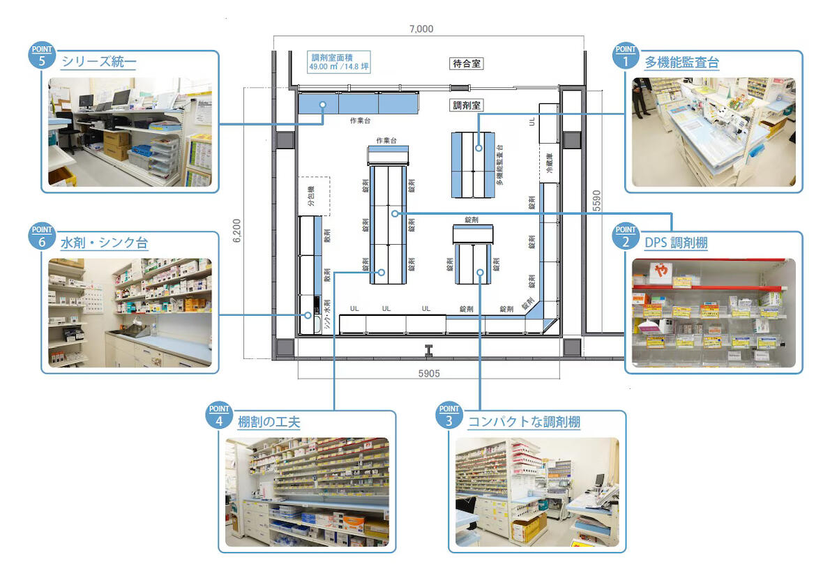 薬剤師様が安心して働けるように、細部にまで配慮が行き届いています。