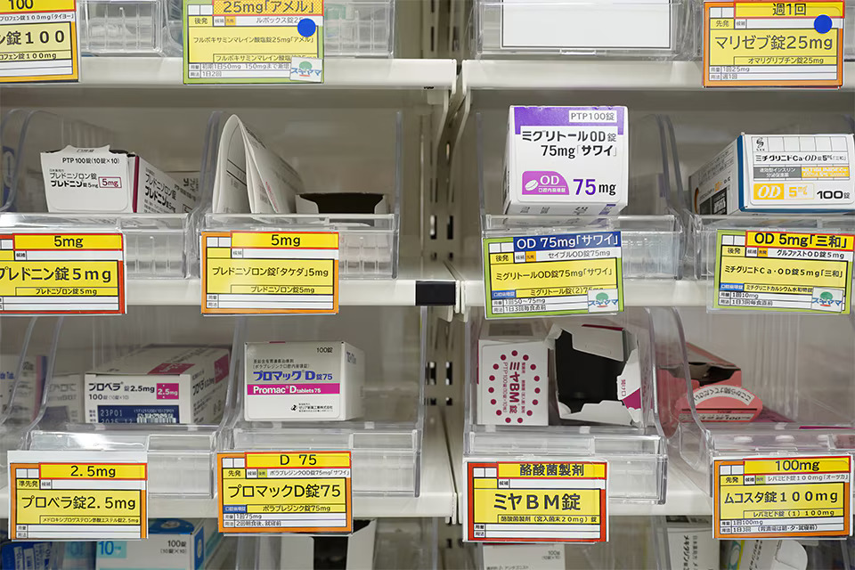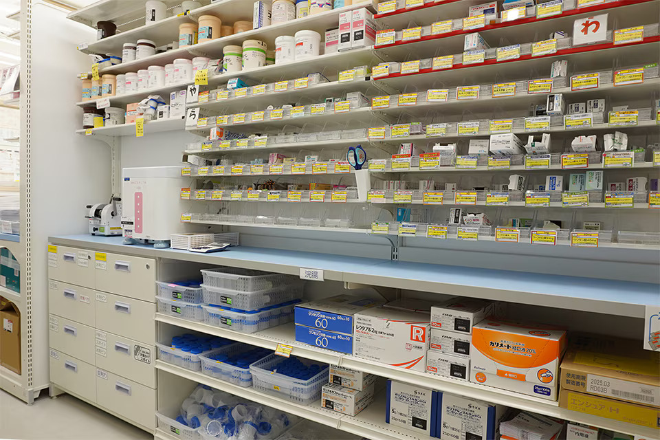スギヤマ薬品様では、調剤棚の棚割りのカスタマイズにも細やかな工夫が光ります。