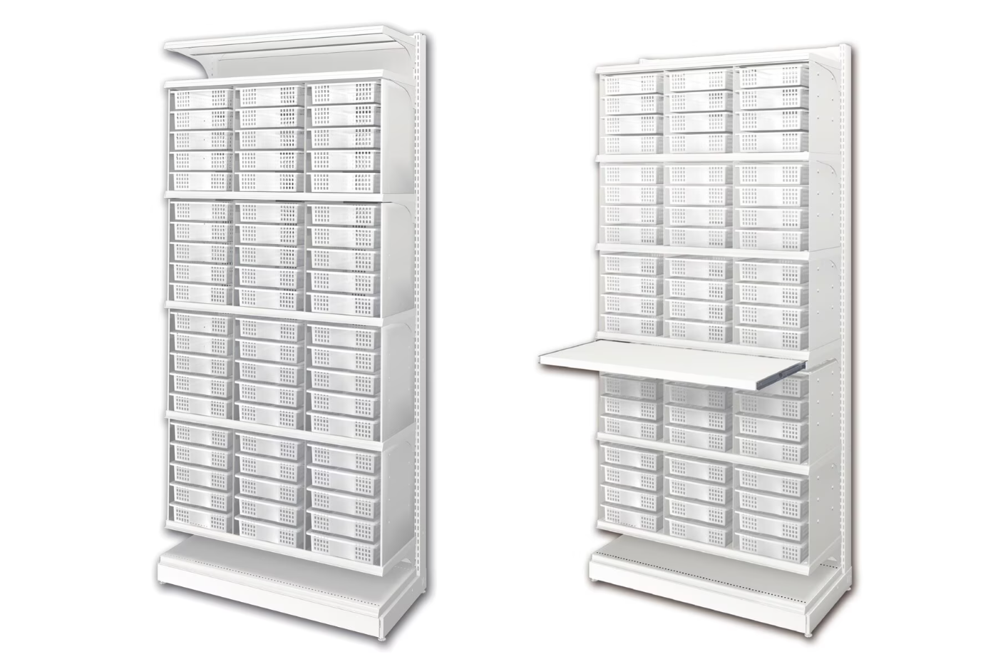 奥行き530の調剤棚と同じ引き出し容量で、省スペースでありながら、使いやすさを追求した優れた設計です。