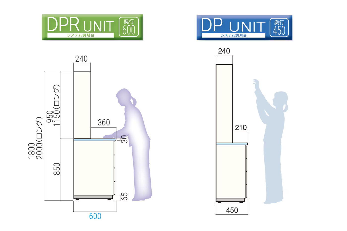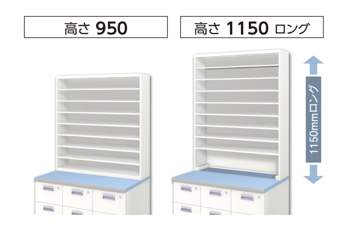通常タイプの95㎝と作業面を使えるロングタイプ115㎝の2パターンから選べます。