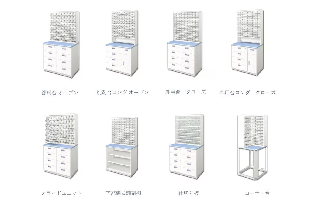 ご要望に合わせて、調剤棚のカスタマイズはご提案させていただきます。豊富なパーツの中から最適なカスタマイズをご提案しますので、ご相談ください。
