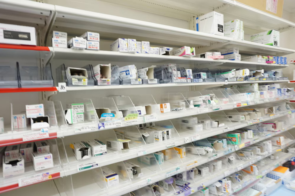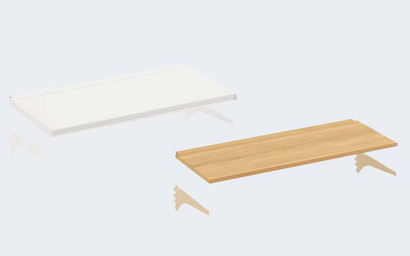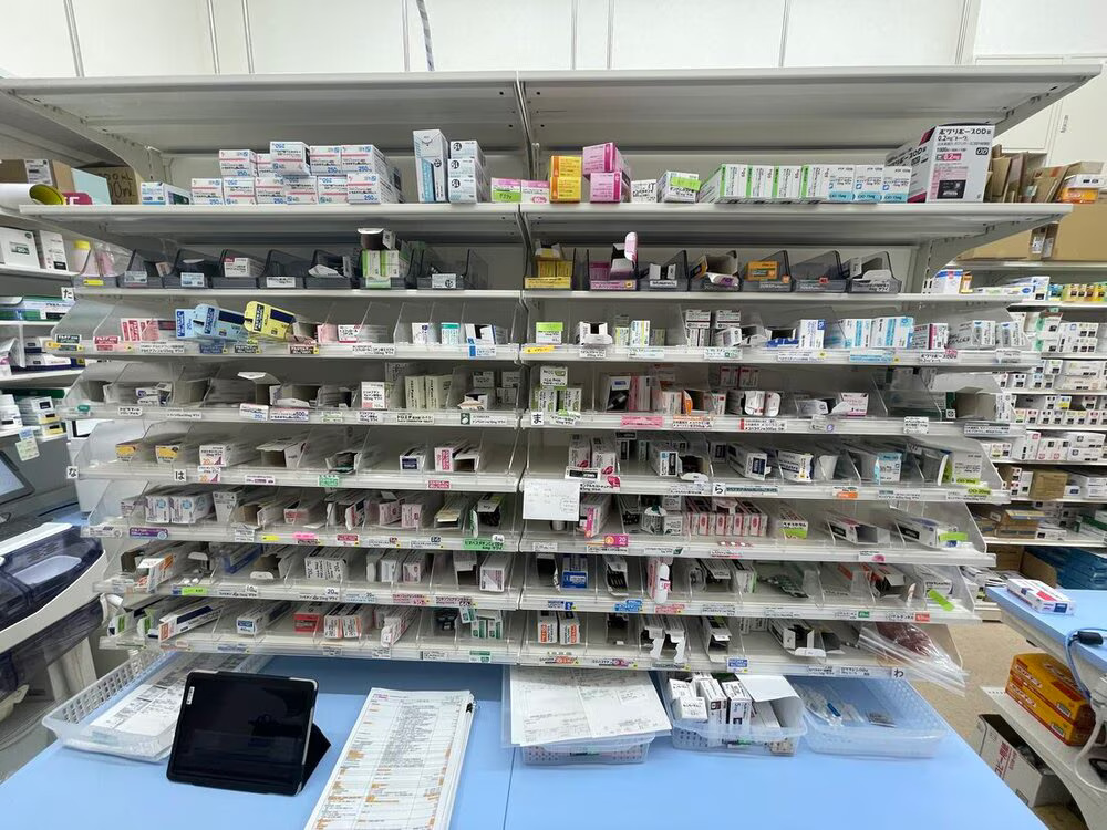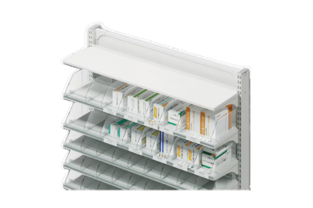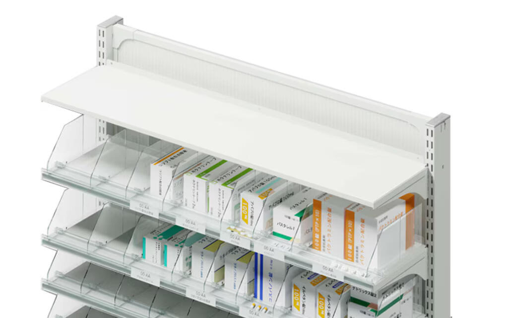 他社の棚板でも設置可能です。現在お使いの調剤棚に取り付けることが可能です。