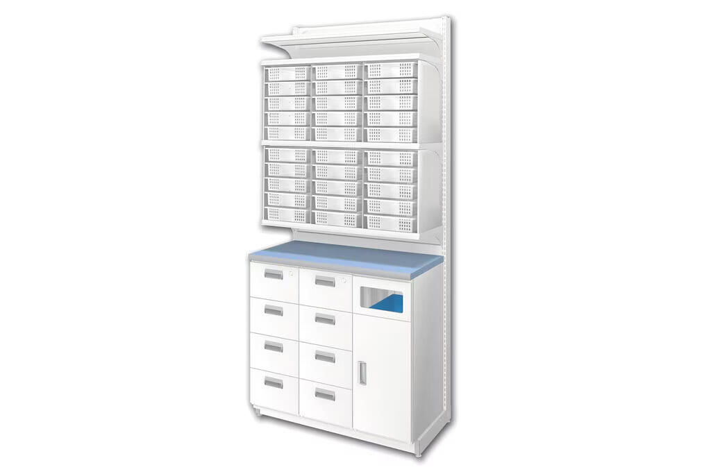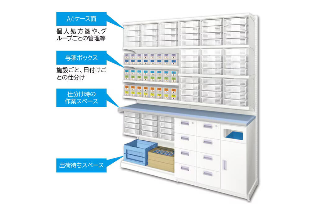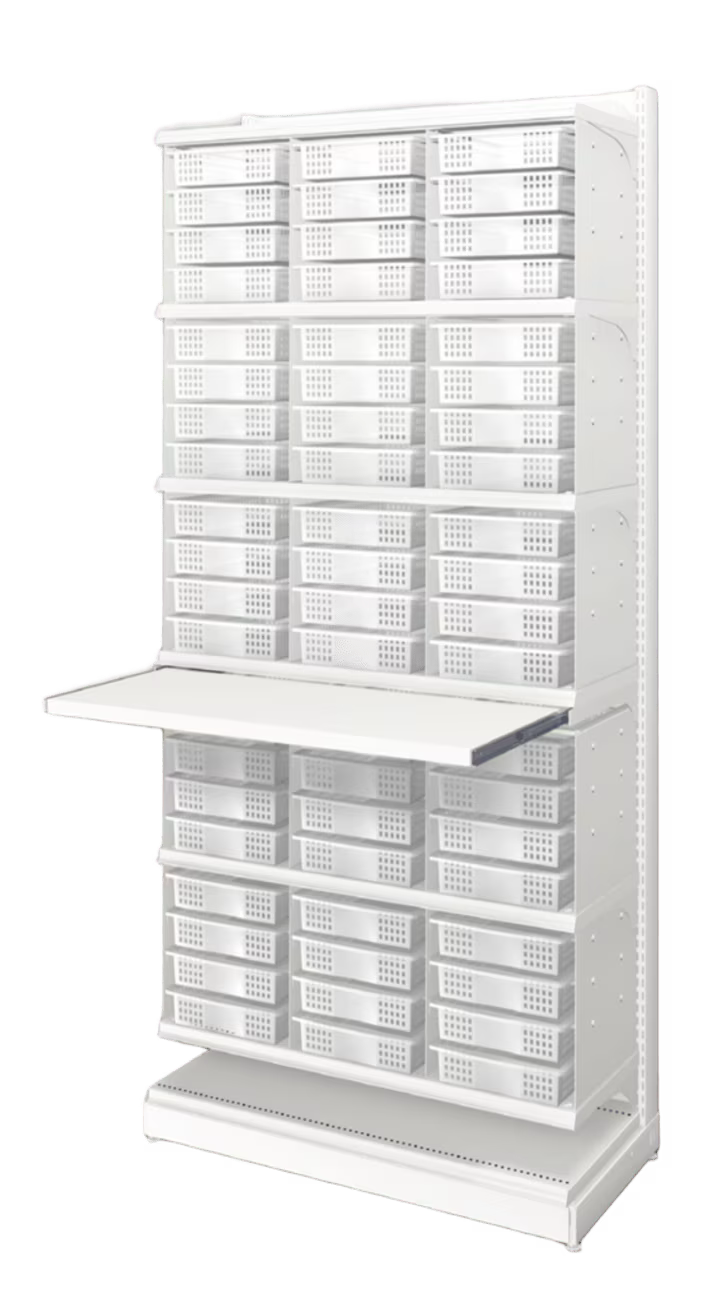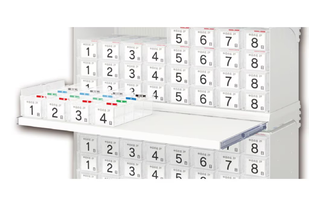 中日製品の調剤棚・調剤ユニットに取付可能です。カスタマイズすることで、より運用しやすく効率的な使い方ができます。