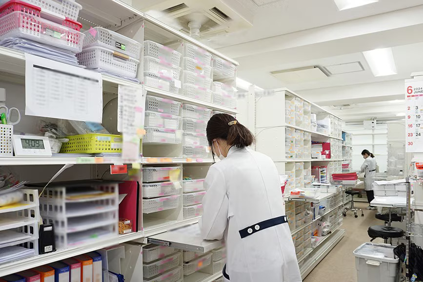 与薬残置薬ラックを活用し、施設患者様ごとにカゴで管理を行っています。カゴを積み重ねることなく、整理整頓された管理を実施することで、作業もスムーズに行うことが可能です。