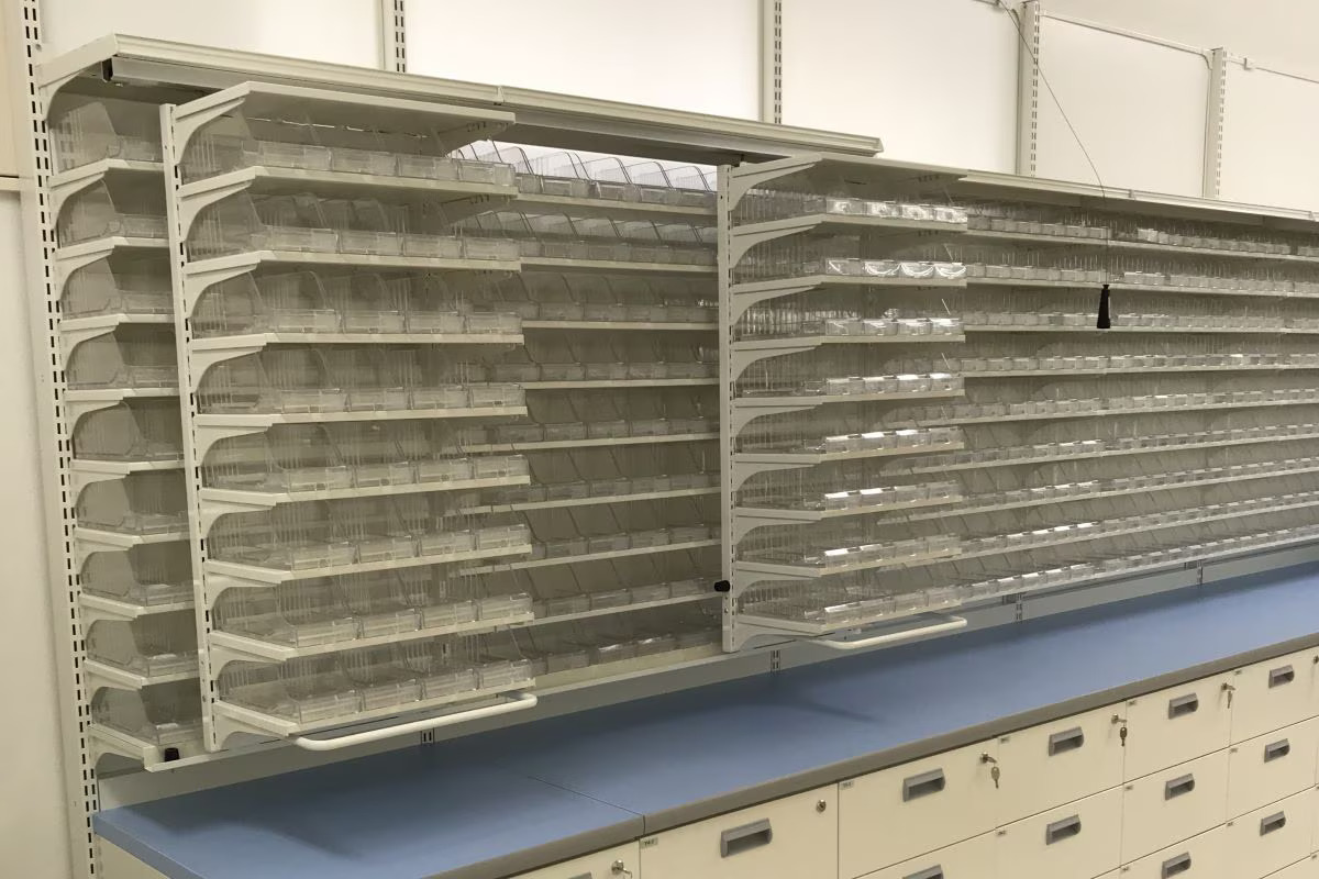 薬品数が増え、調剤室内の収納効率が重要になっています。スリット式の調剤棚でメタルラックや木製棚の単なる収納活用ではなく、拡張が高く、使いやすくカスタマイズできる最適な調剤室を実現します。