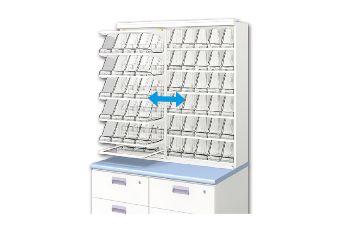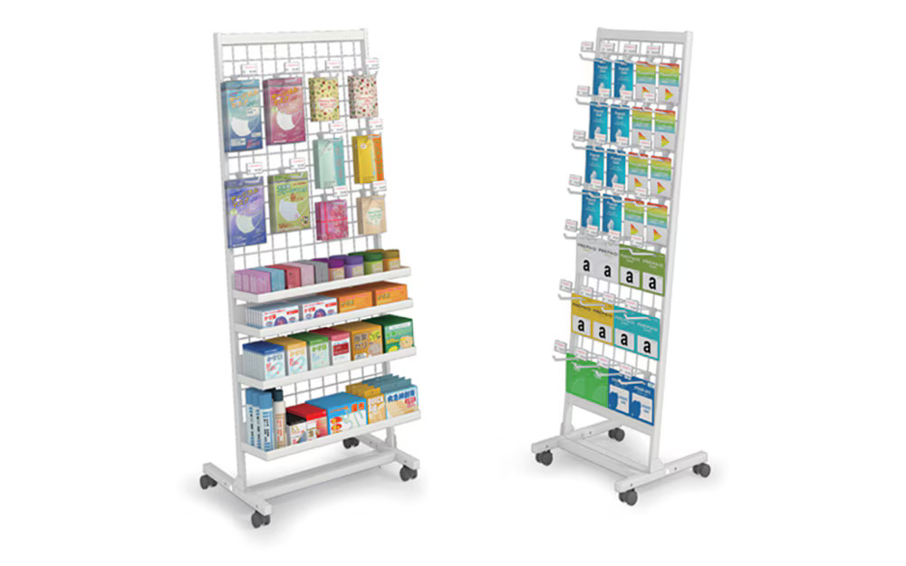 待合室が手狭な薬局様向けに、省スペースで必要最小限の陳列ができる陳列棚をご提案します。組立も、工具不要で簡単組立ができるため、ローコストでかんたんに整理された陳列・OTCスペースをつくれます。